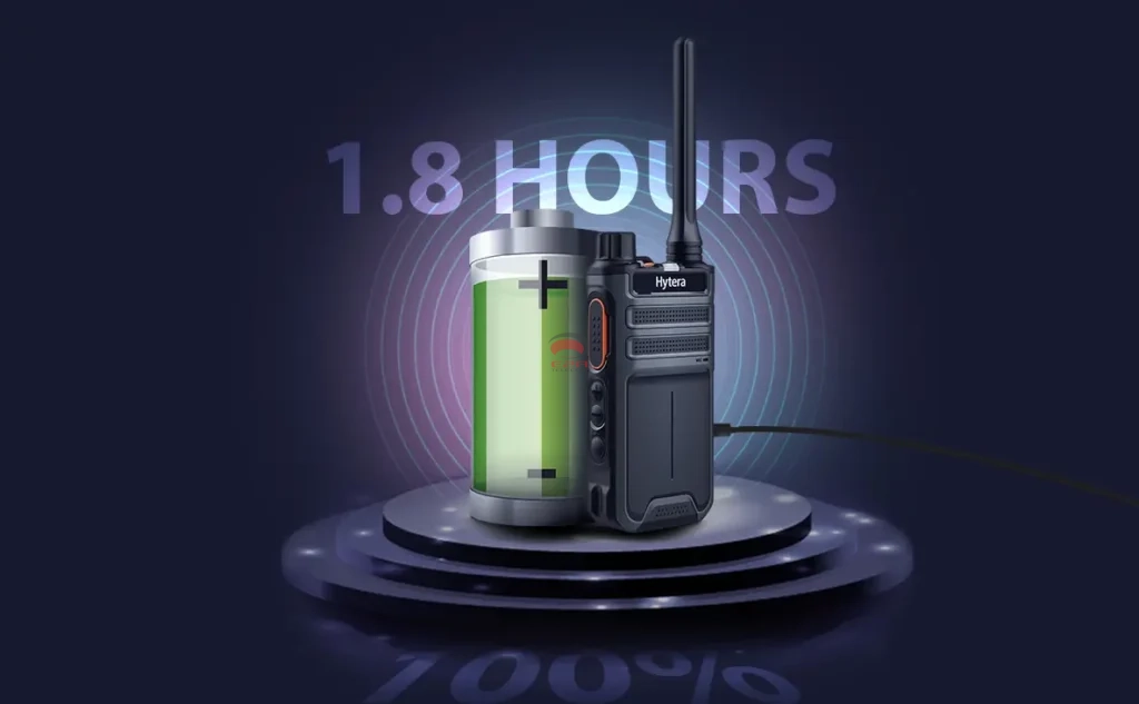 O plugue do carregador Type-C pode carregar totalmente o rádio em 1,8 horas ou carregar o rádio em apenas uma hora para obter 10 horas de conversação. Um carregador rápido de 10W garante um carregamento seguro e confiável, que pode funcionar em ambientes hostis, como temperaturas altas ou baixas.